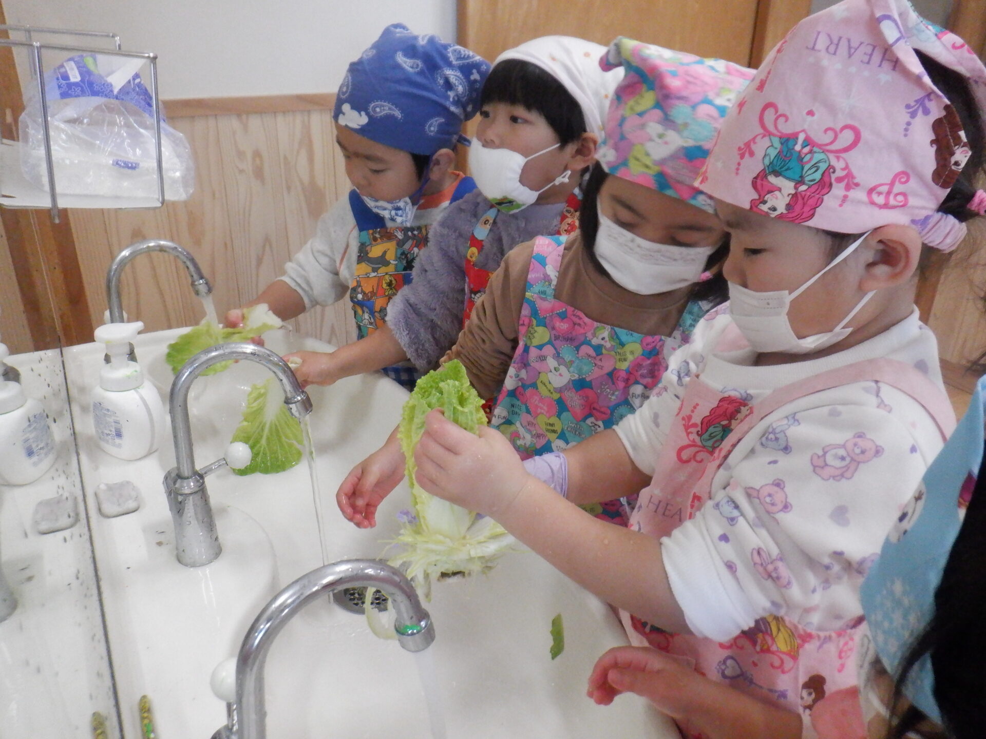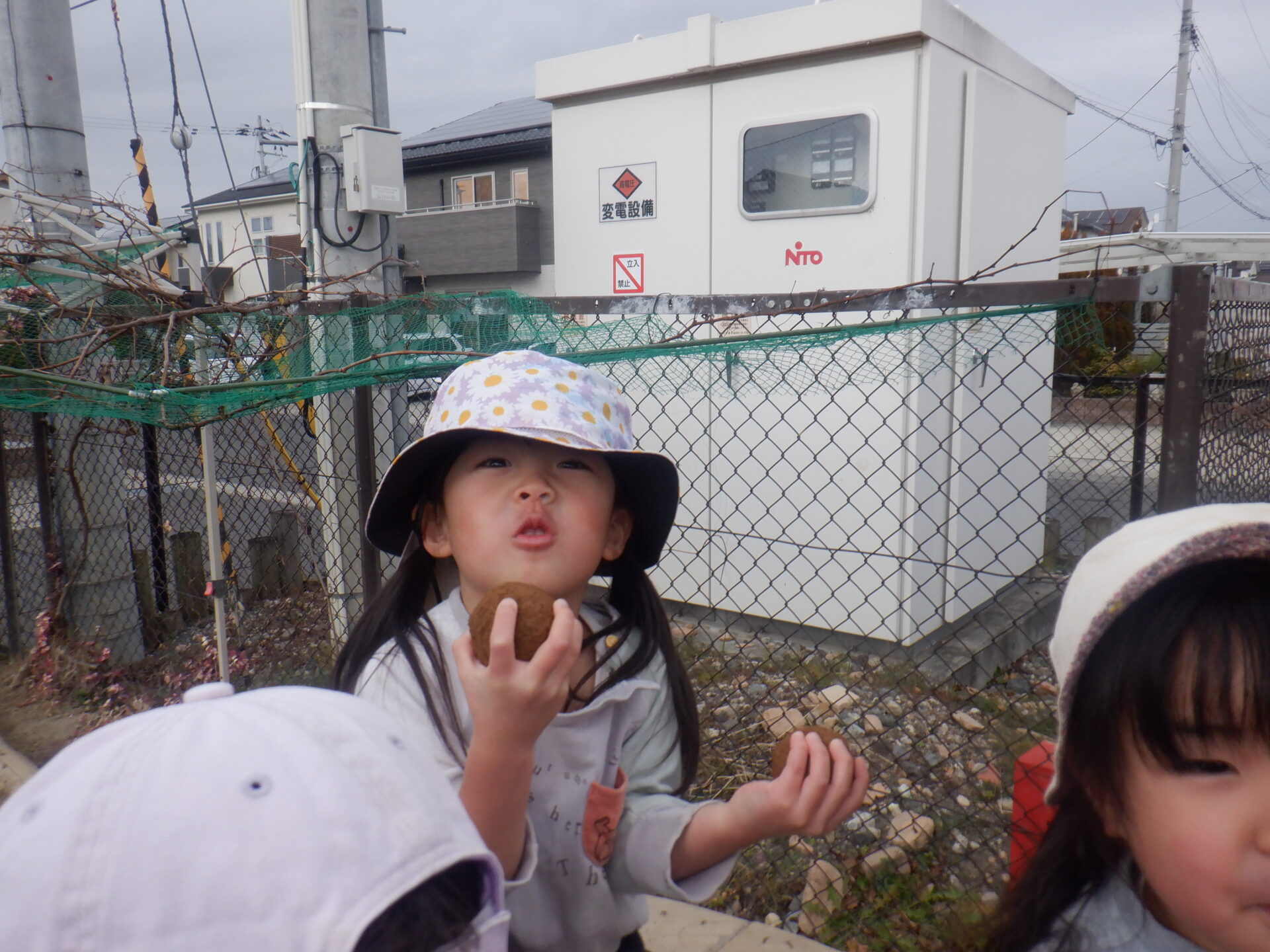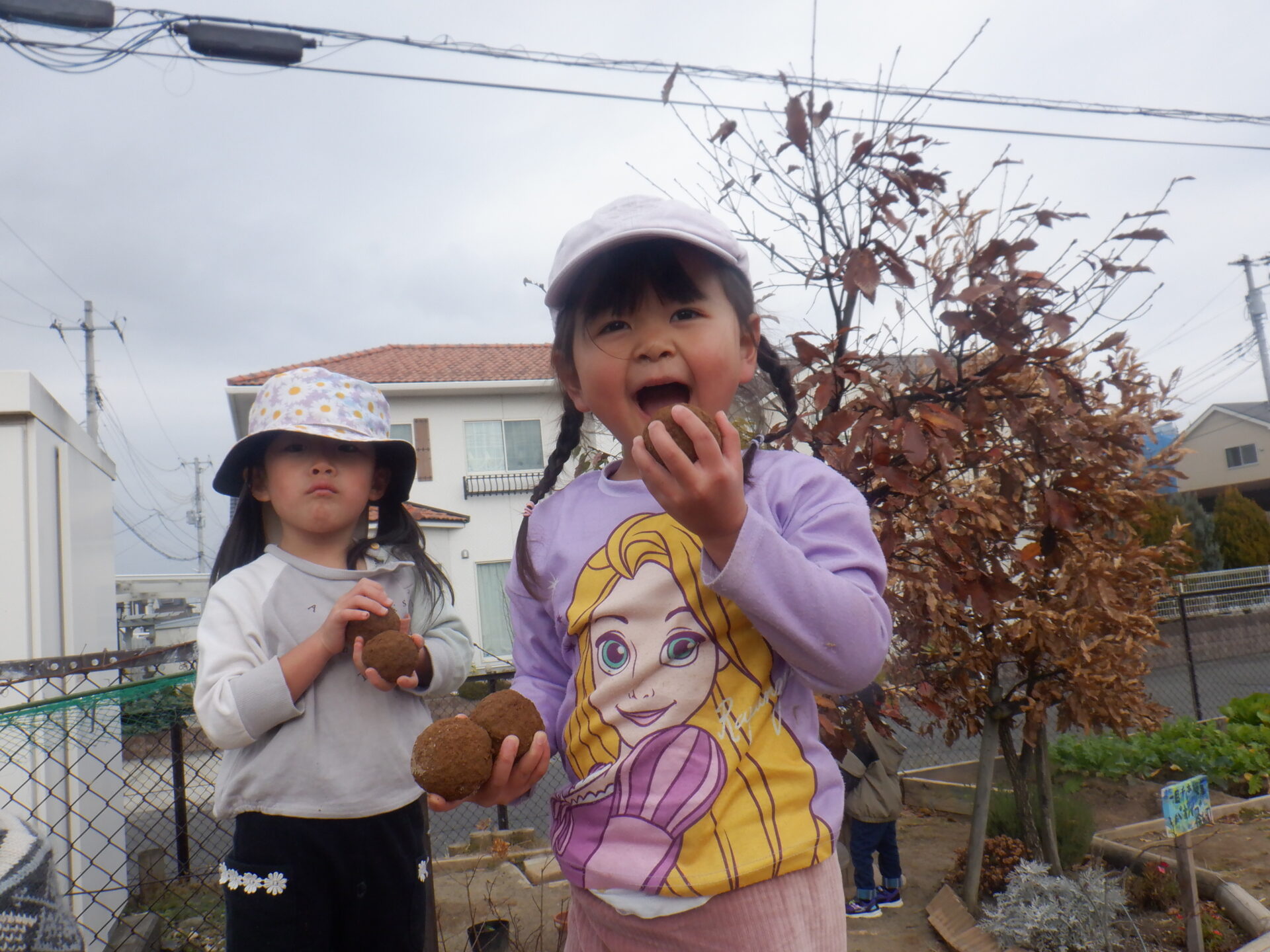 最後に感謝祭(収穫祭)も開催し、園庭の畑で育てていた野菜や4・5歳クラスが育てていたお米を使っておにぎりと芋煮作りをしました。