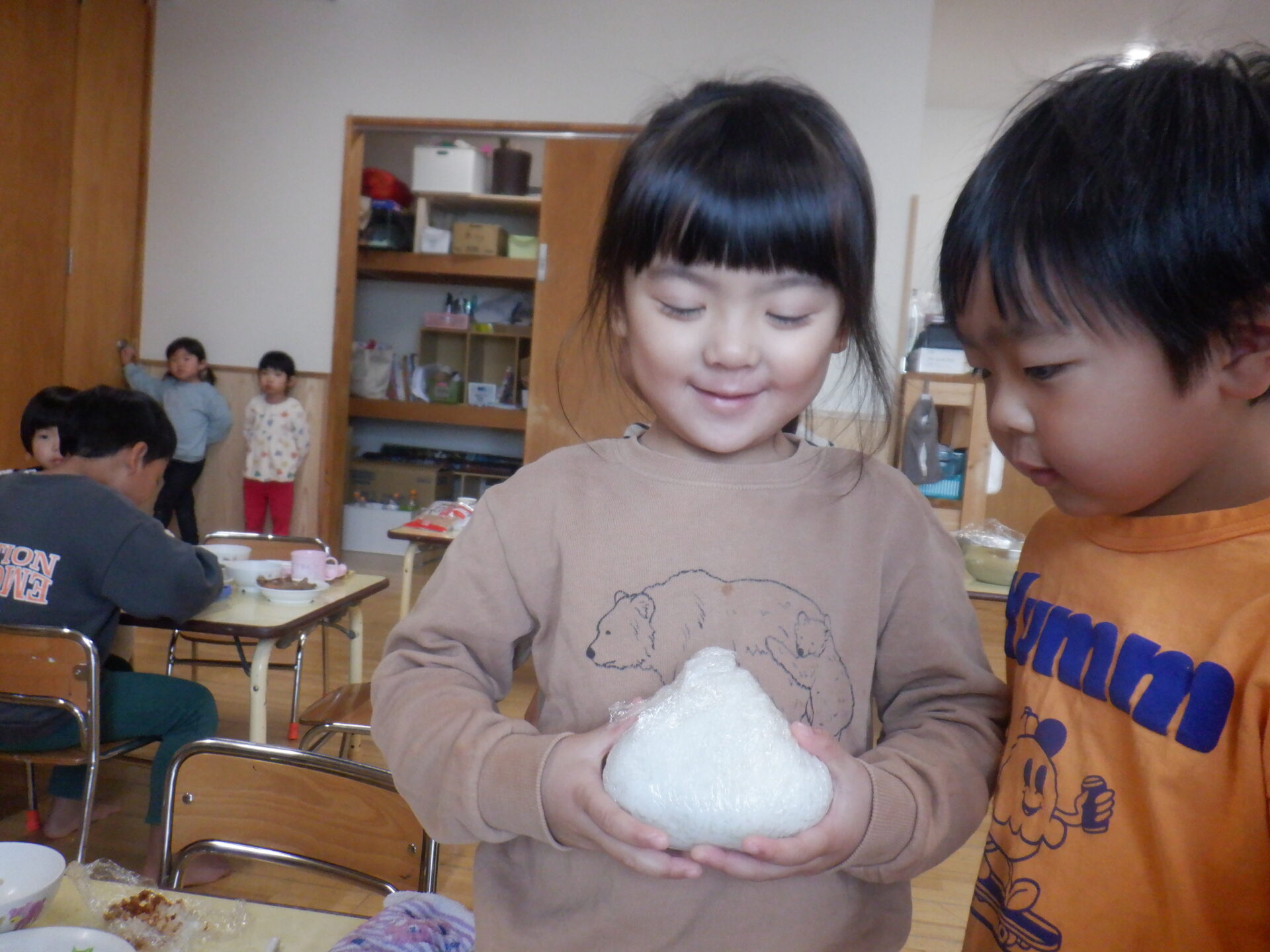 泥んこでおにぎりを作って遊び、遊ぶうちに「本物も作りたい!」と…