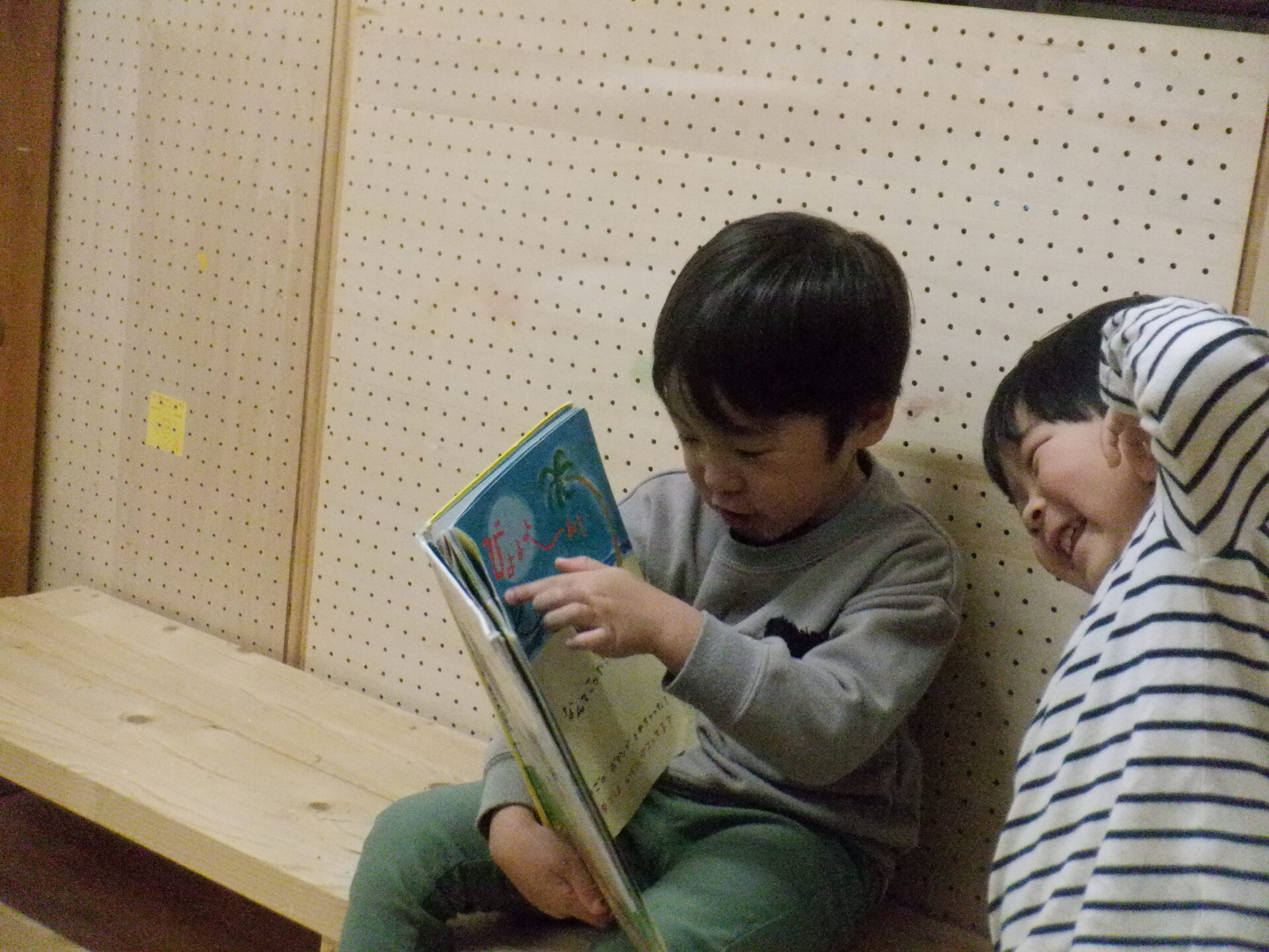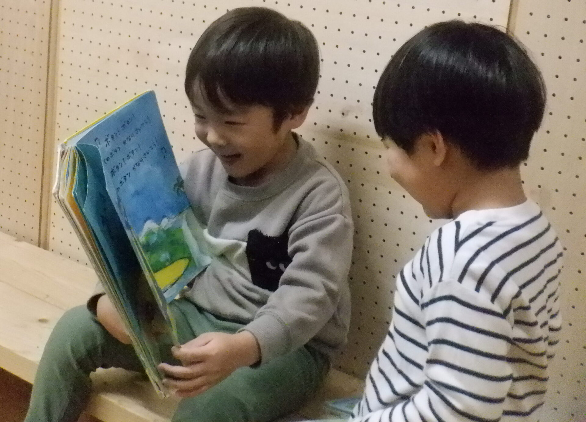 絵本も友だち同士で読み聞かせし合って楽しみ、徐々に文字や数字に興味を持つ姿も。