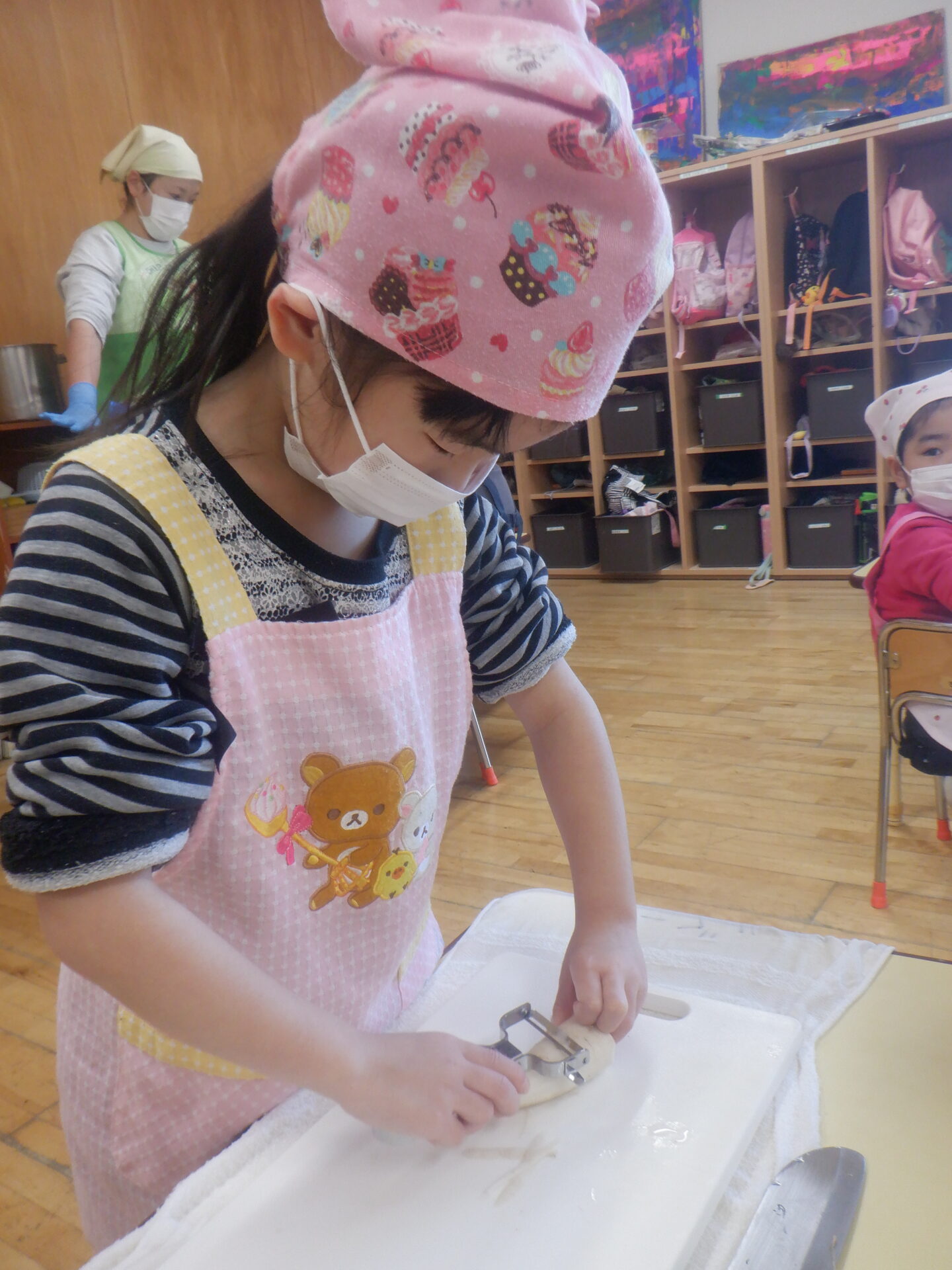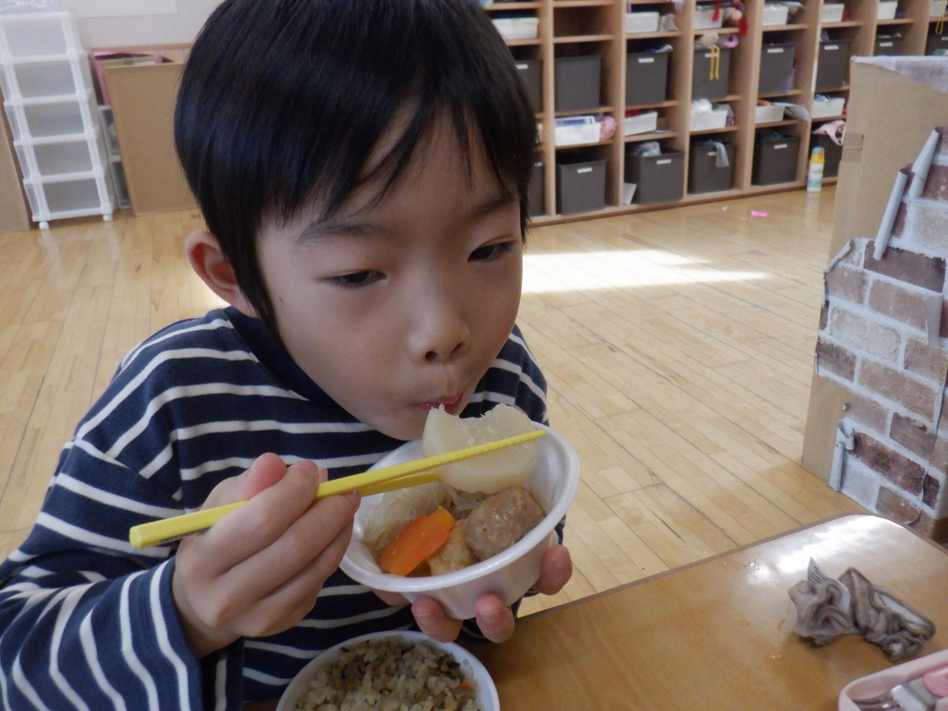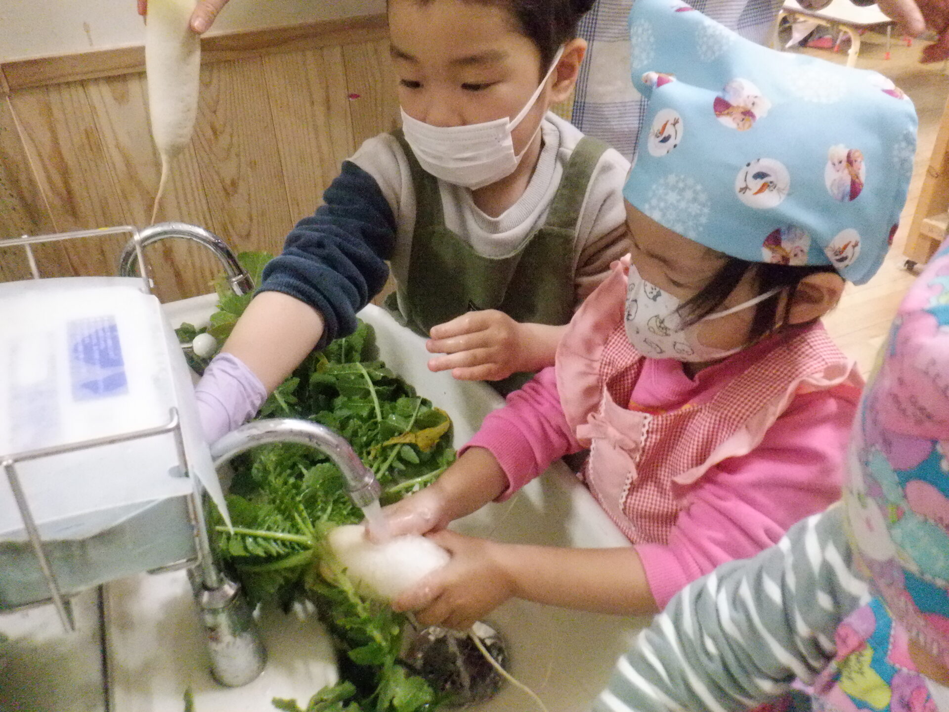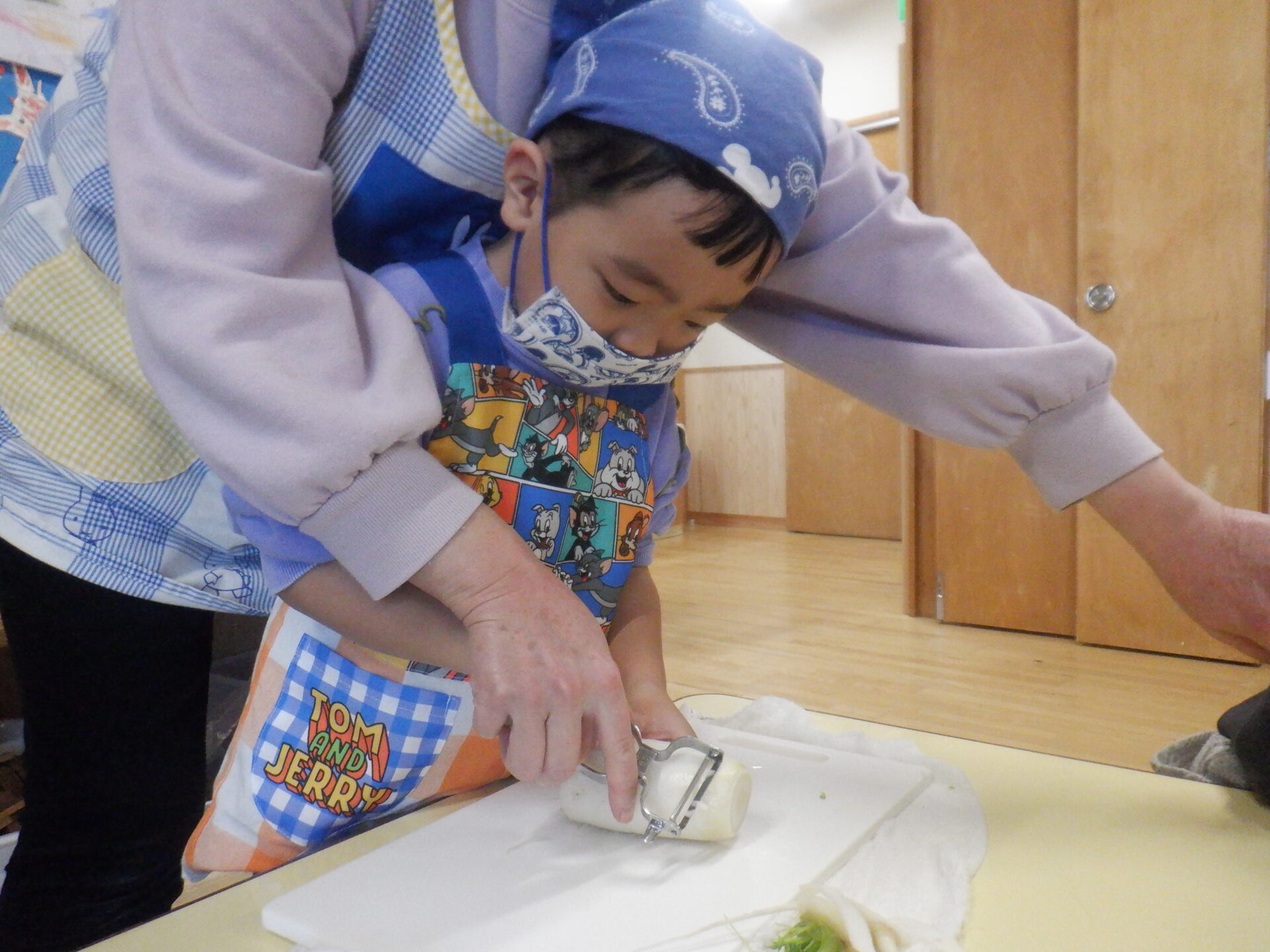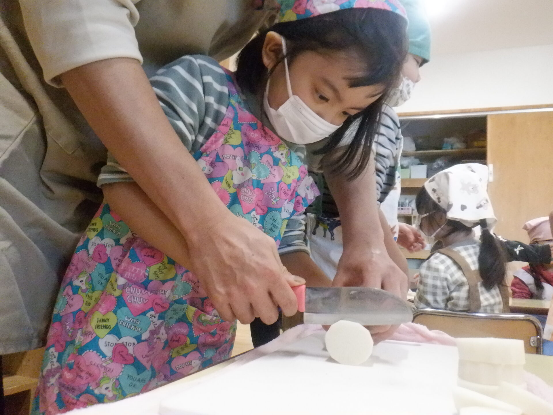 にじ組とひかり組は大根を輪切りに切りました。
