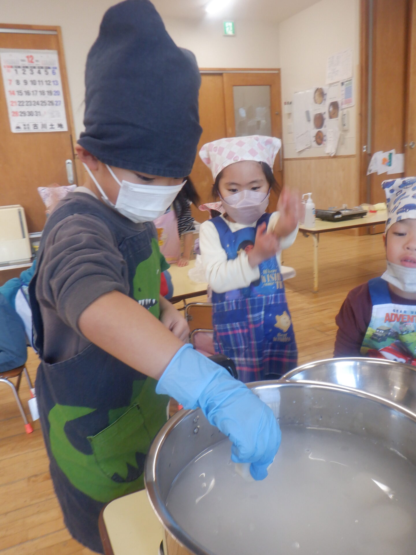 バオバブ組は出汁作り、お米研ぎ、大根輪切り
