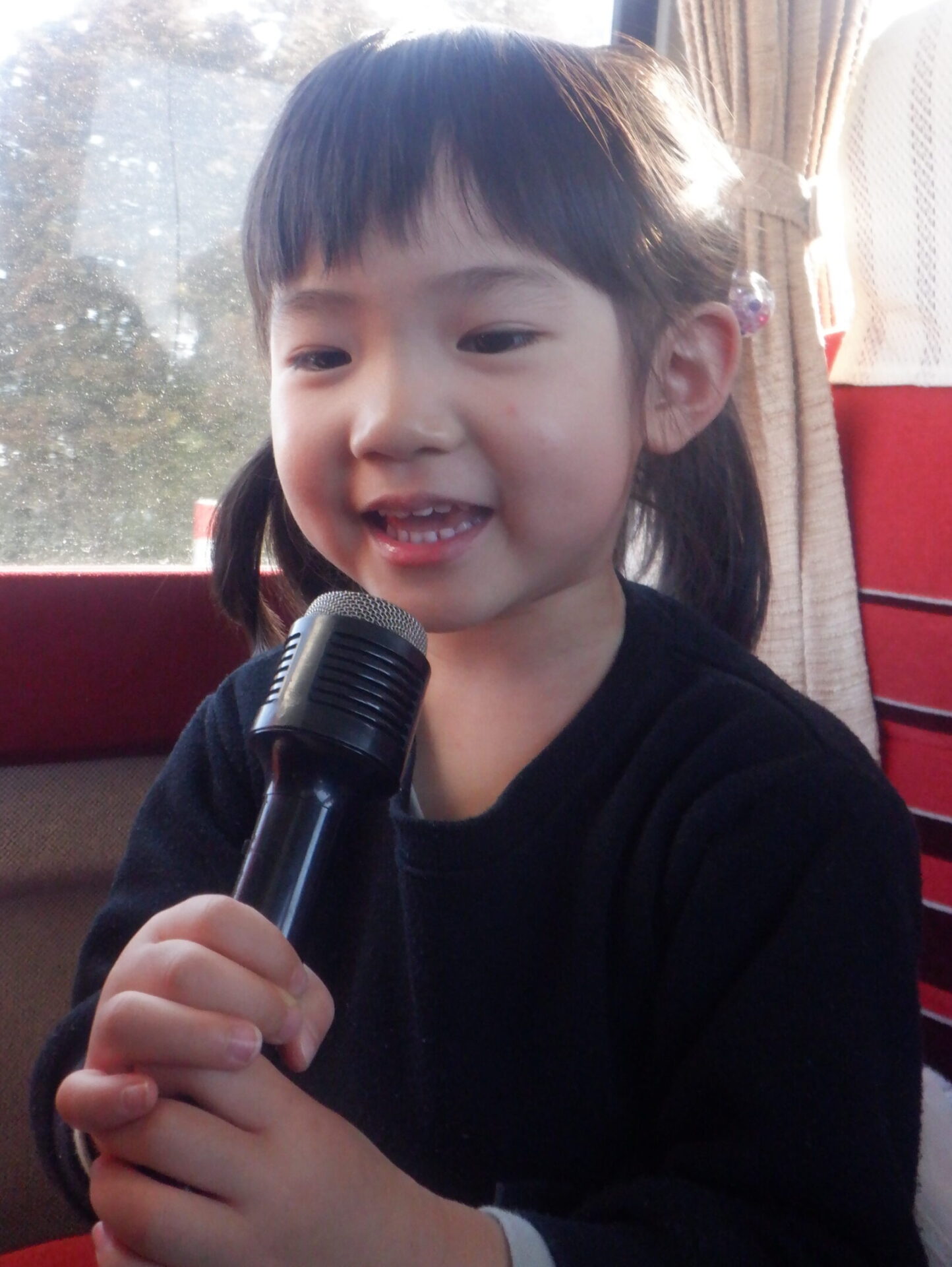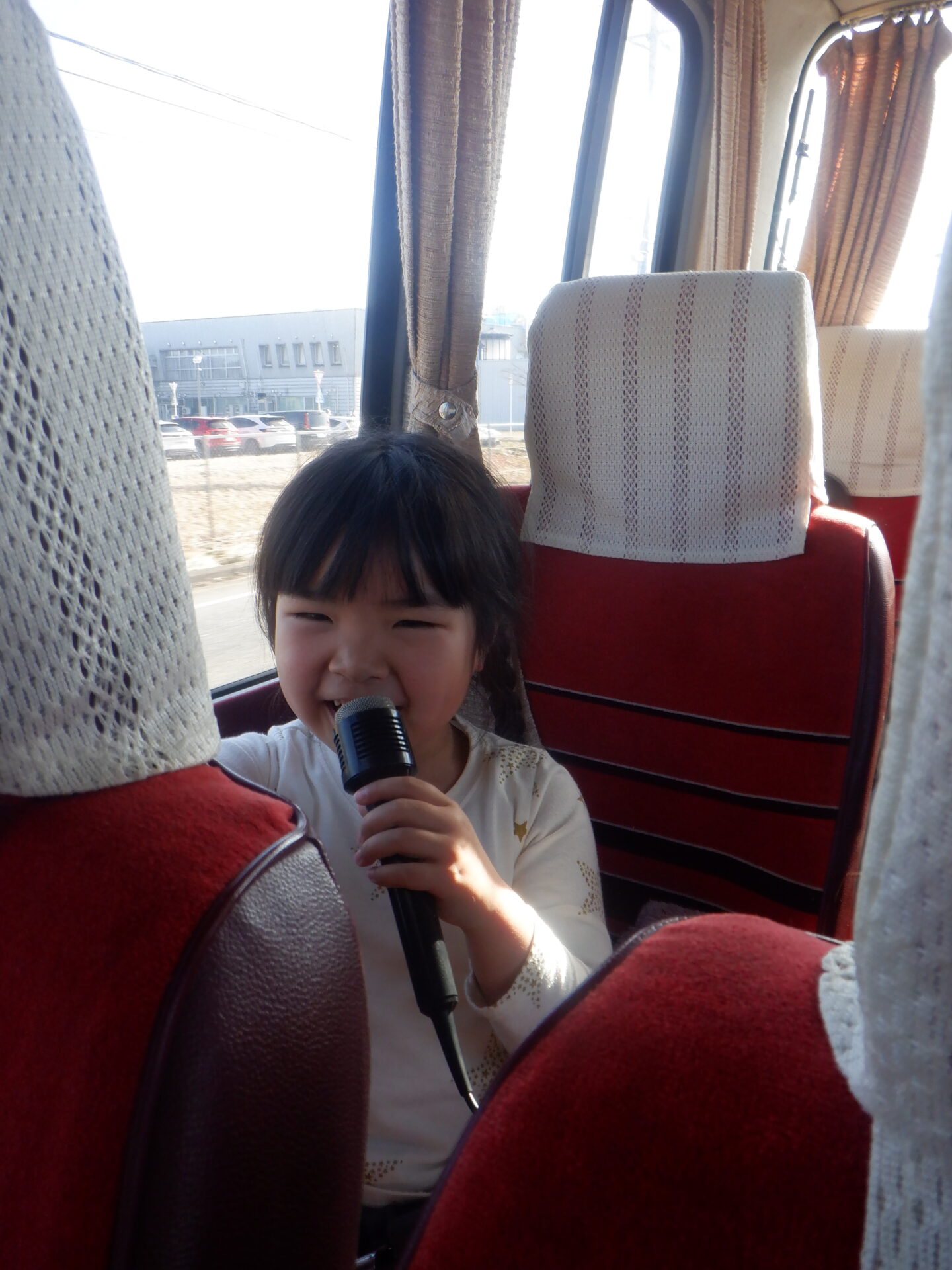 バスではカラオケ大会を楽しんでいました。