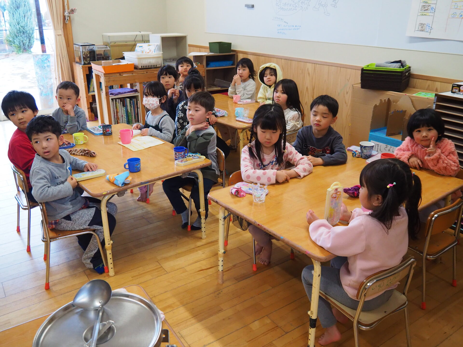 今日、バオバブ組(5歳児)で給食の準備中。ご飯をひっくり返してしまう出来事が…。