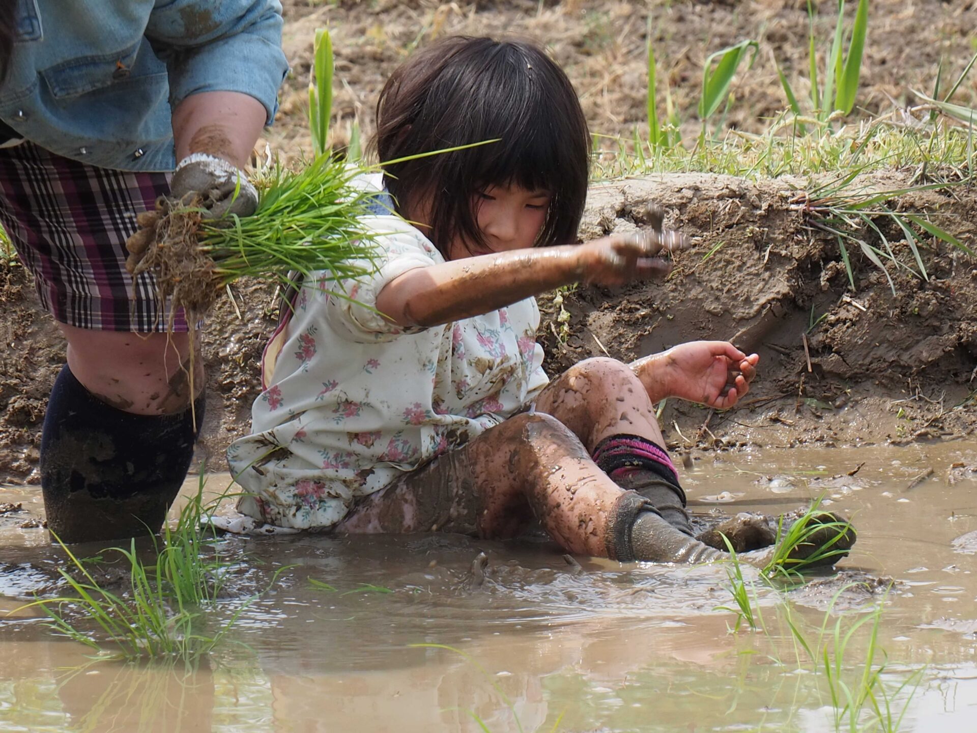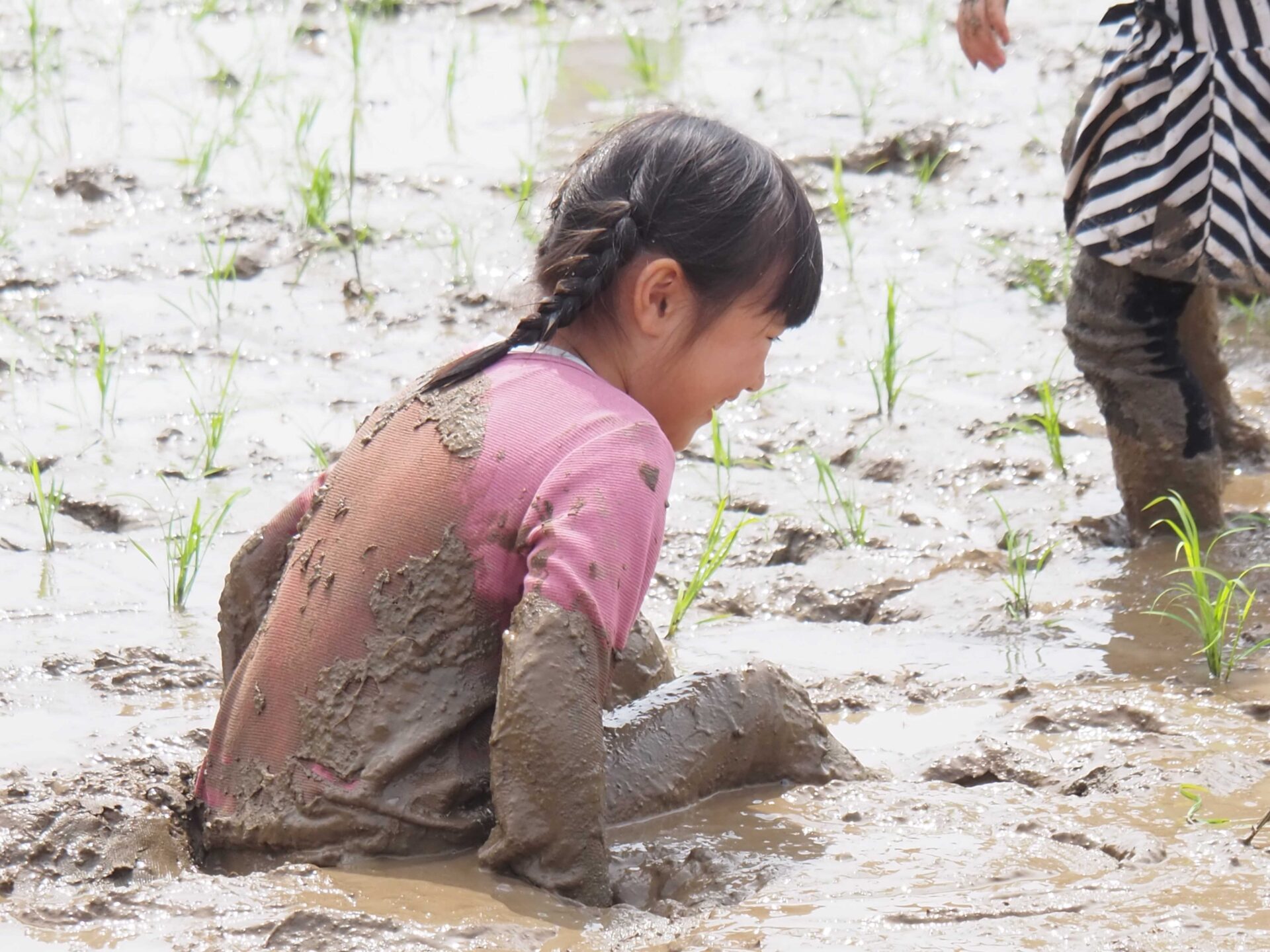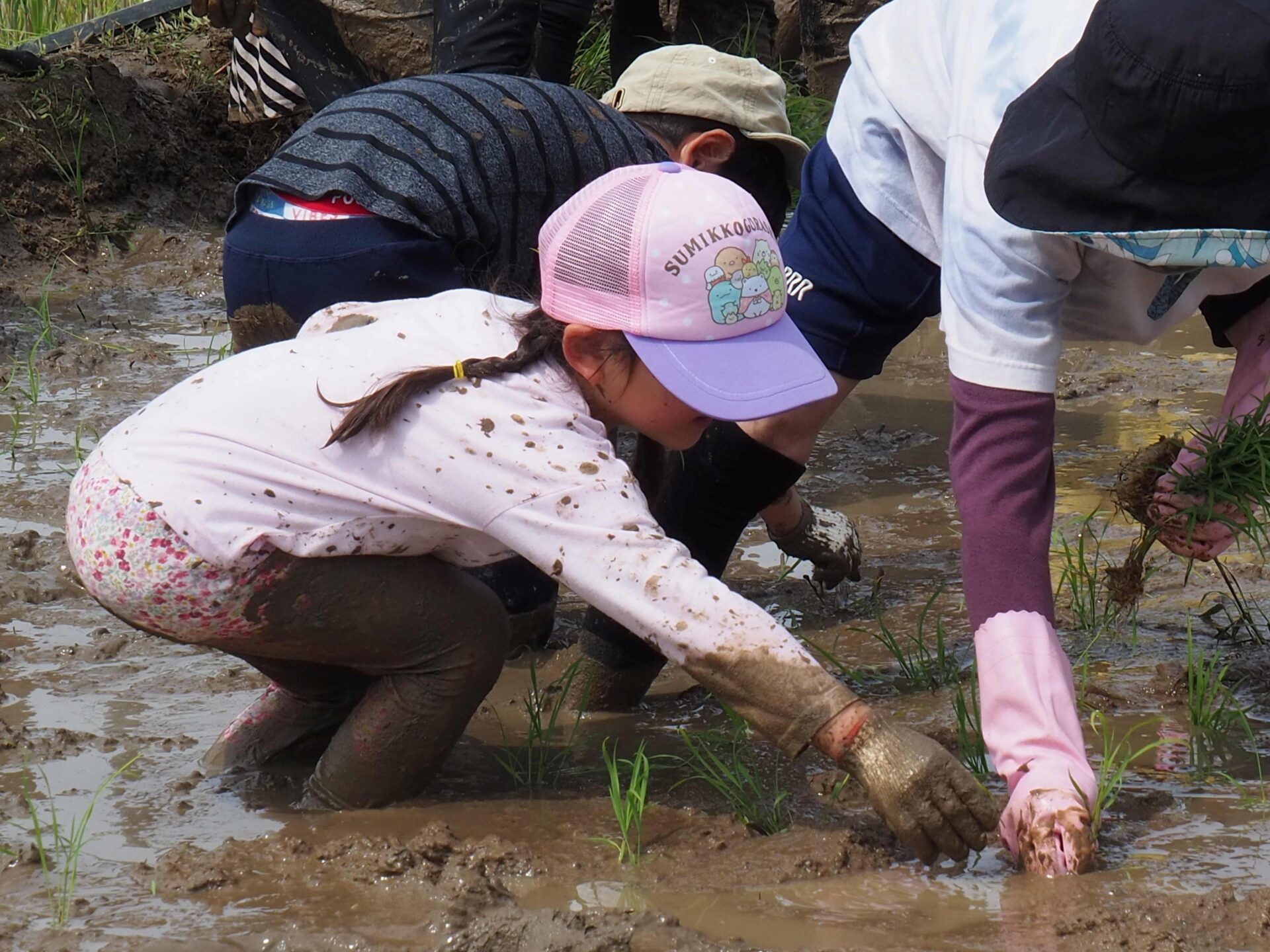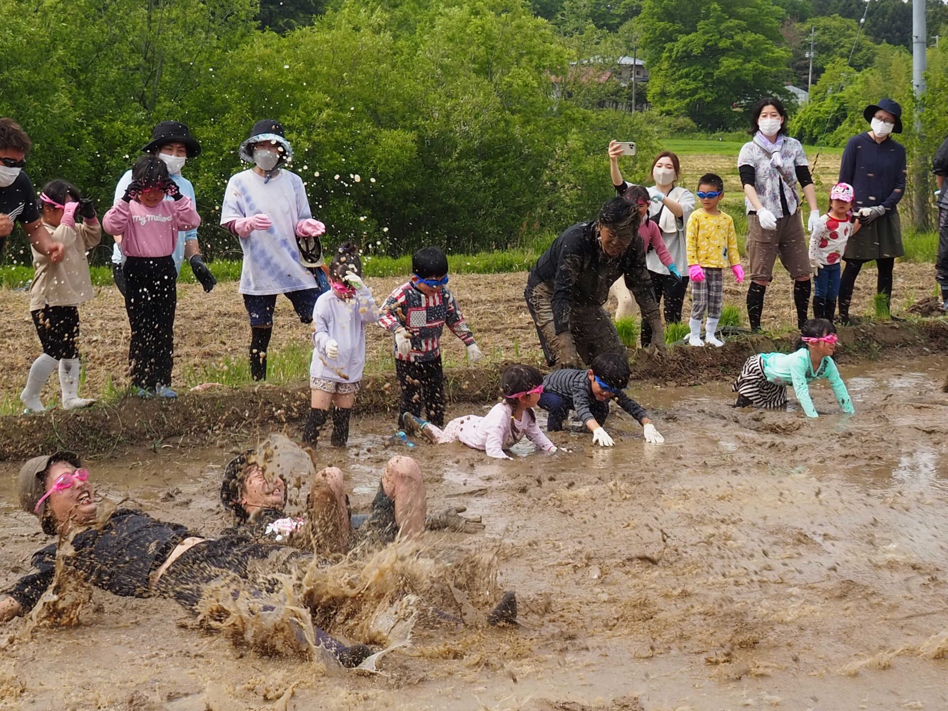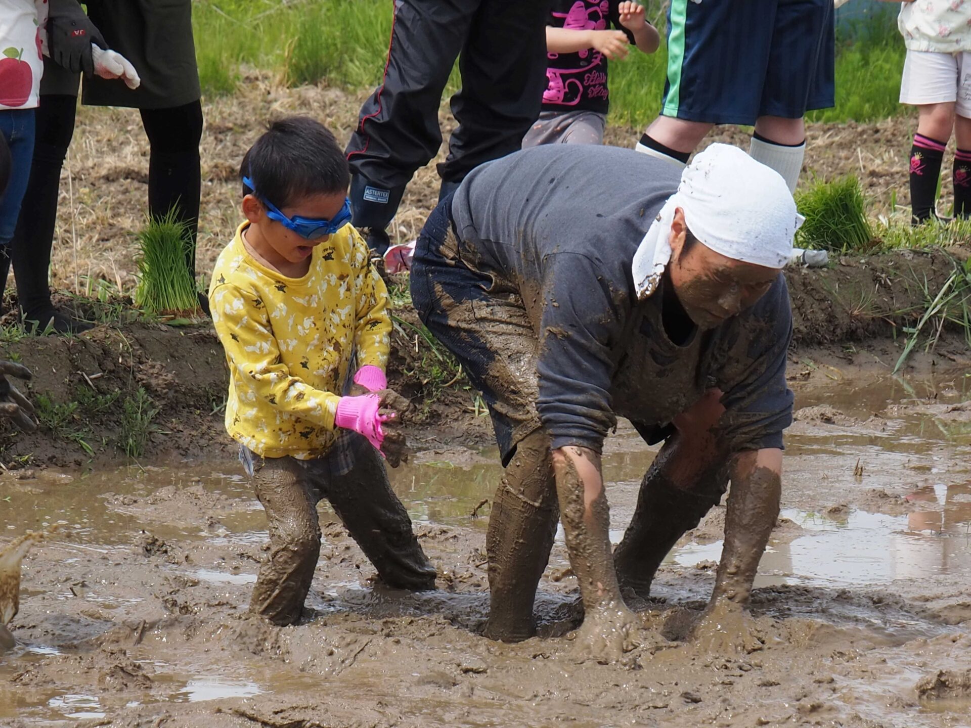 子ども達よりもやる気満々のお父さん方の〝人間代掻き〟からスタート