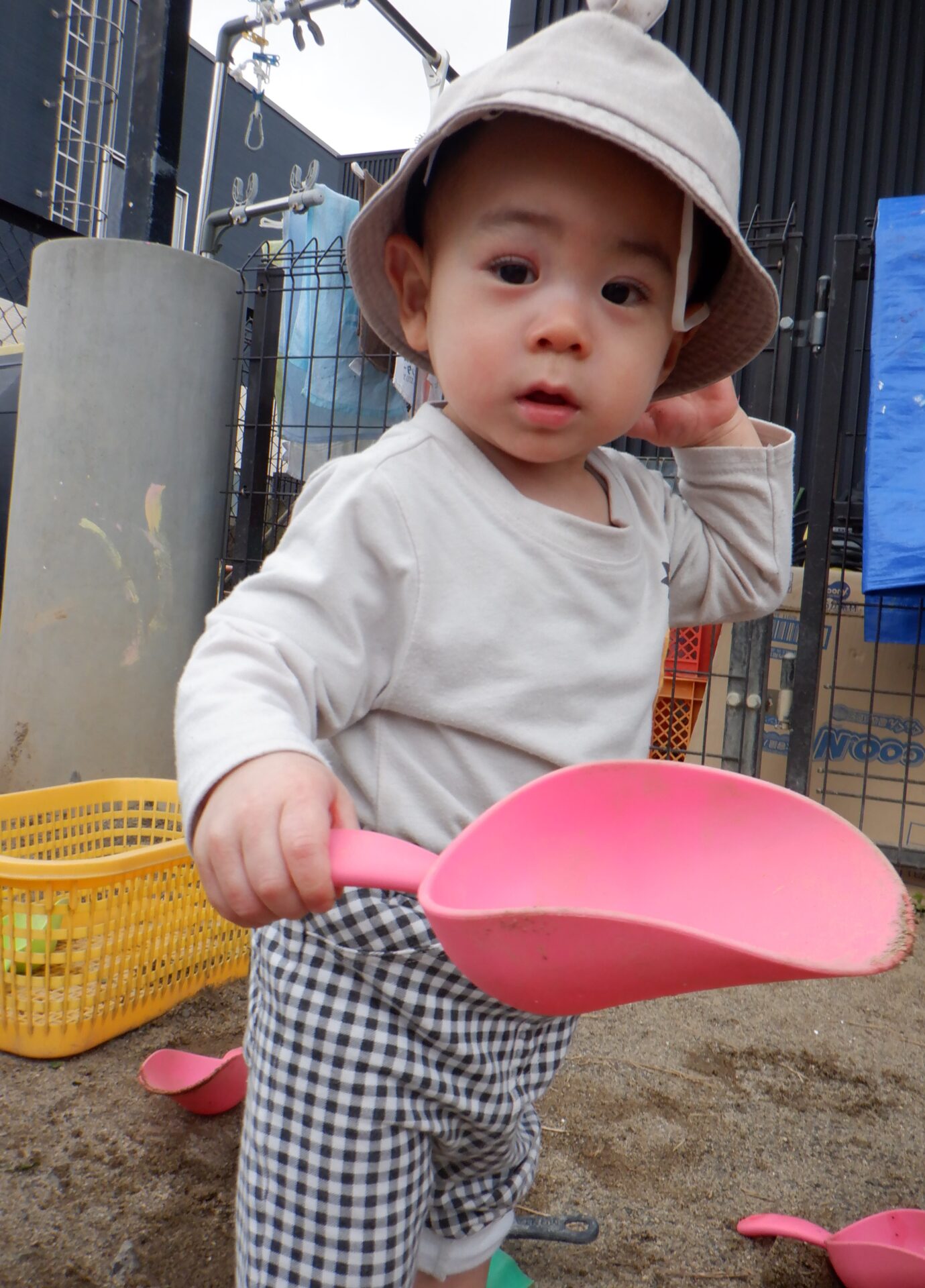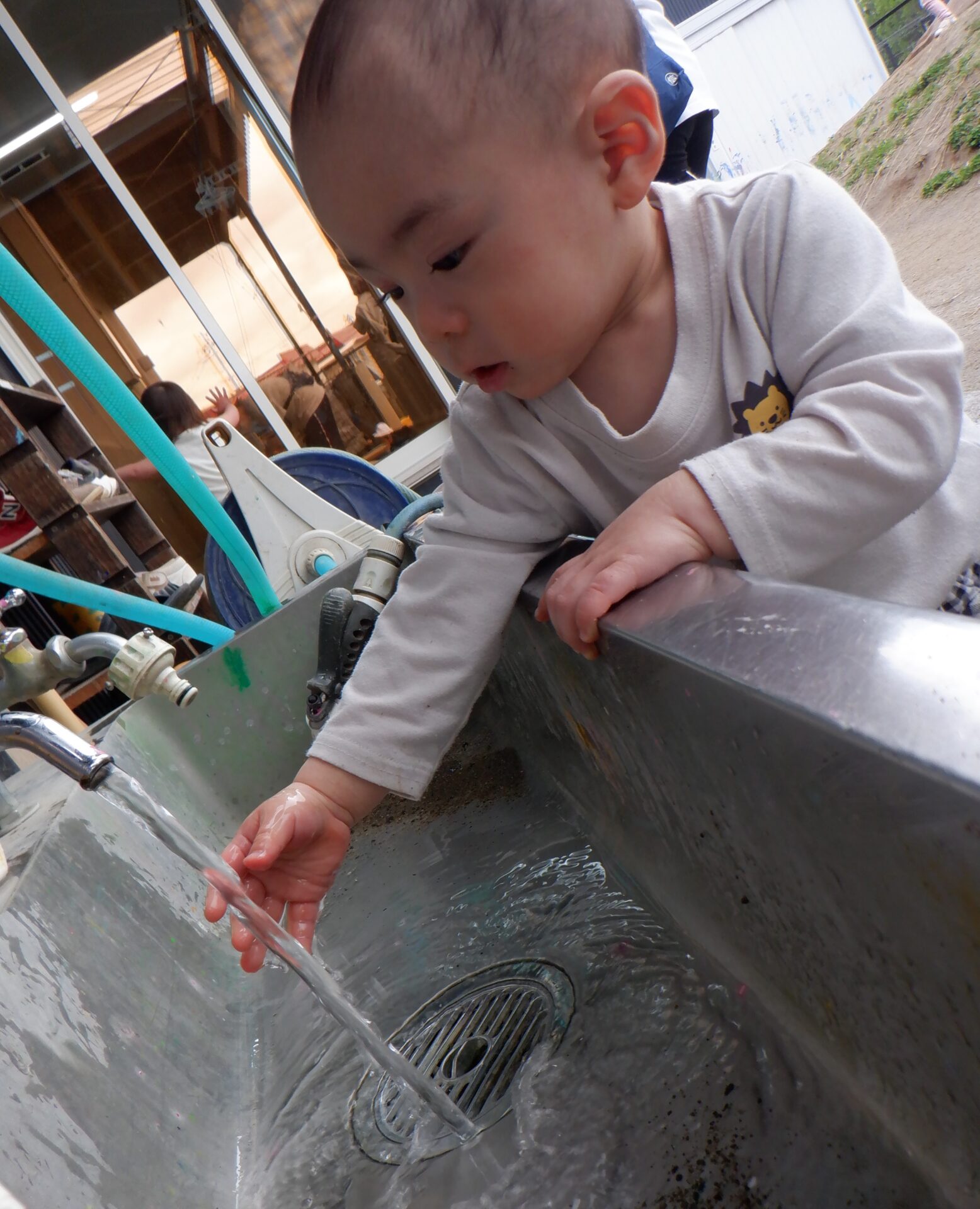 少しずつ新しい環境にも慣れてきて、室内だけではなく戸外でも遊ぶようになってきたあい組さん。