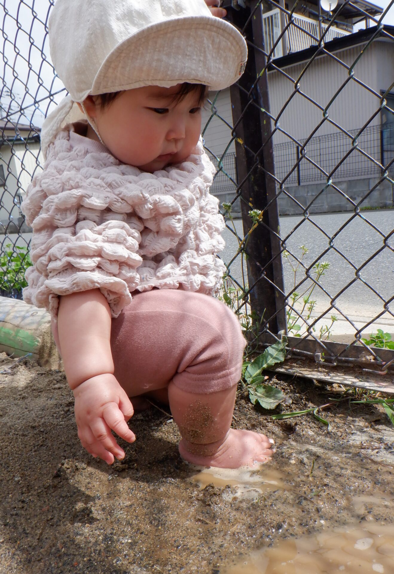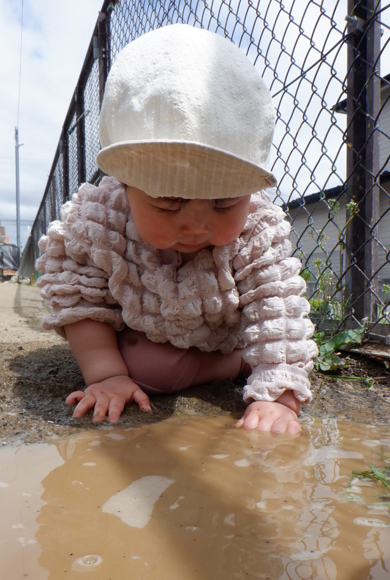 ③伝い歩きをしていたら、見つけた水たまり。