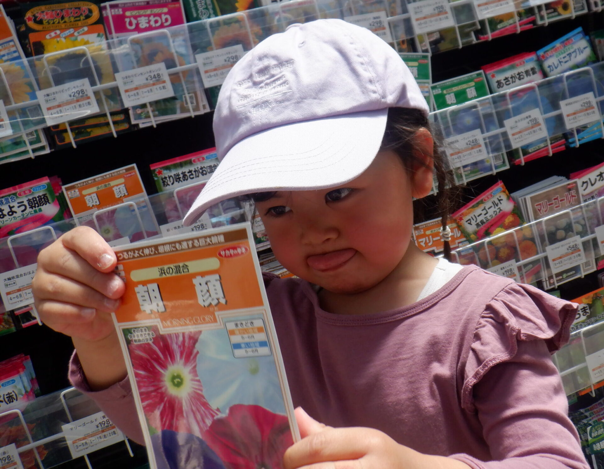 「んー…このお花むらさきあるかな…」