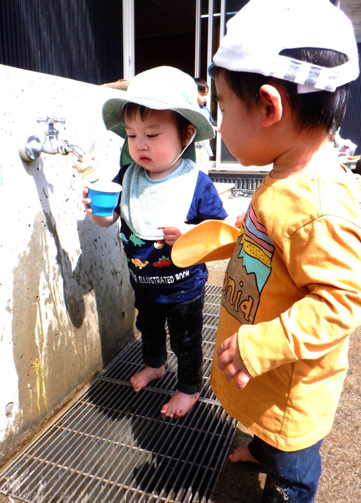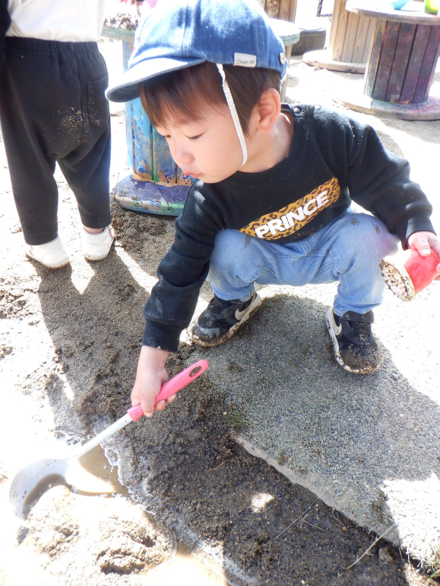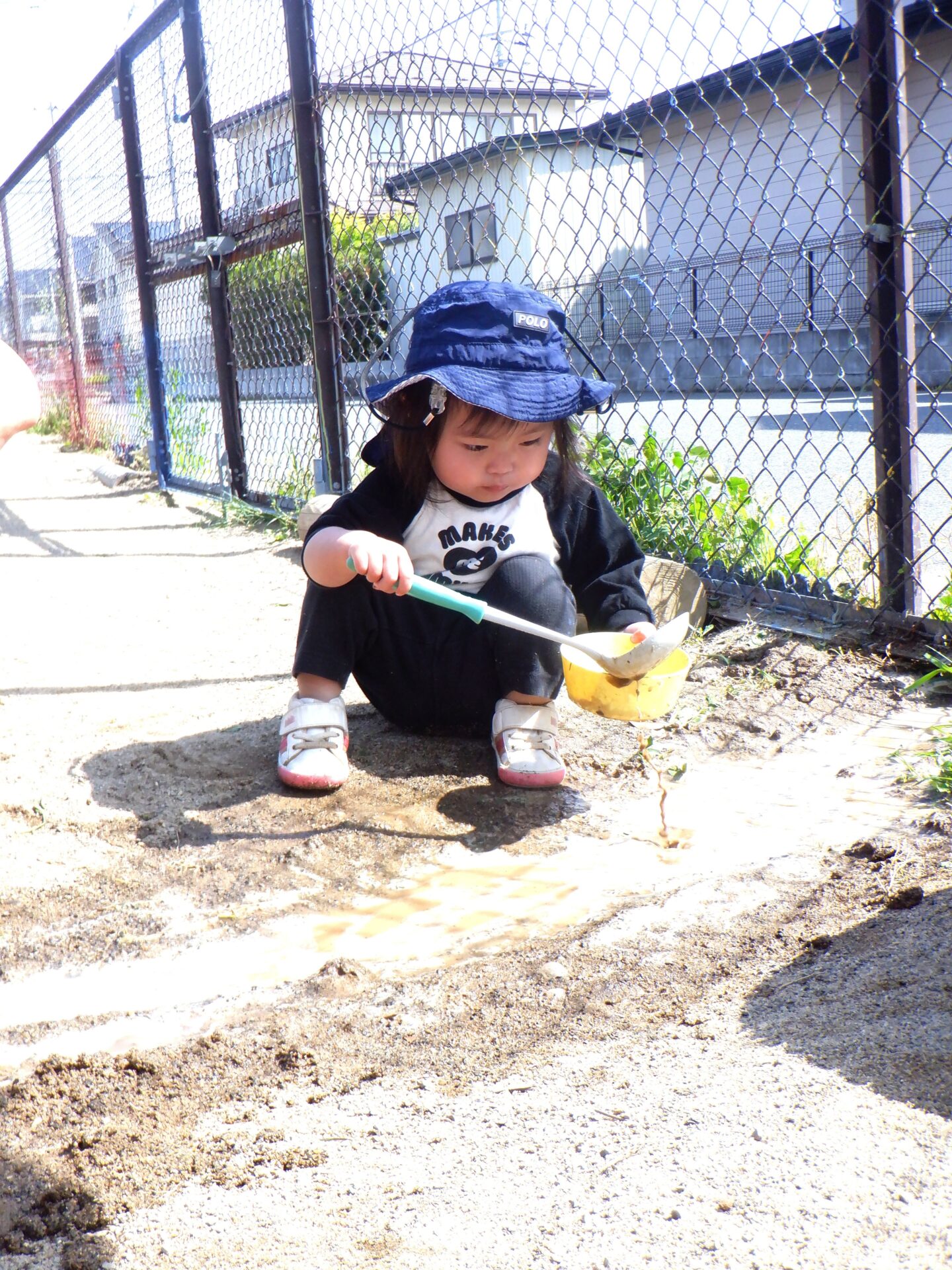 天気の良い日は外に出ると水・泥遊びがスタート!!