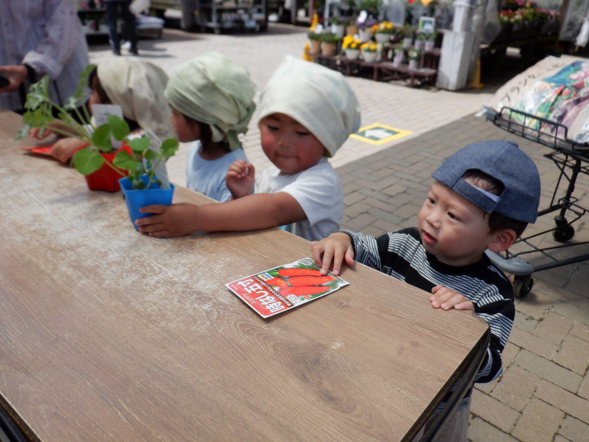 何を植えるのか、苗についている写真を見て悩みながら選んでいました。