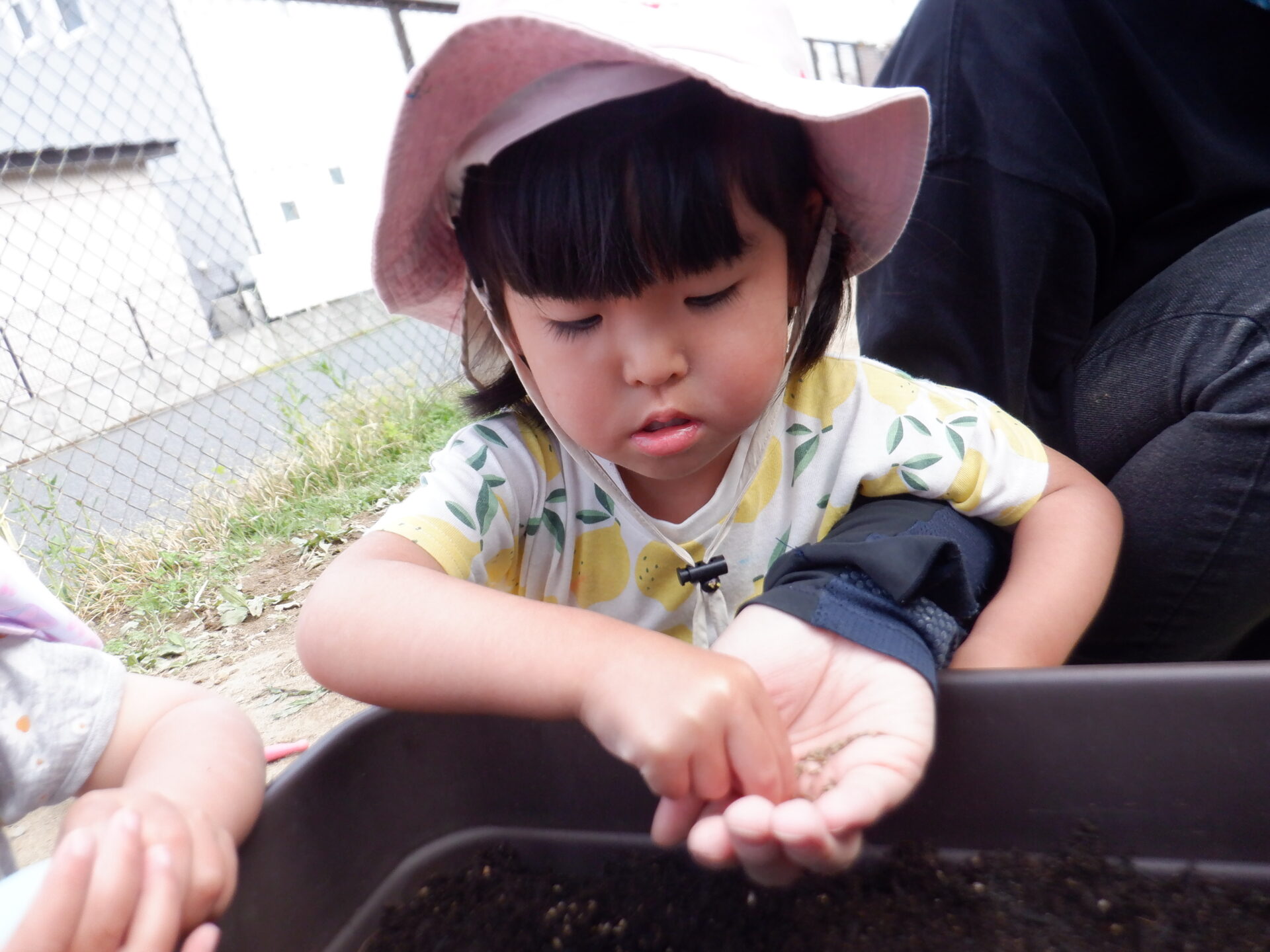 「早く植えよう。」と、植えることを楽しみにして真剣な表情で一生懸命種まき、苗植えをしていました。